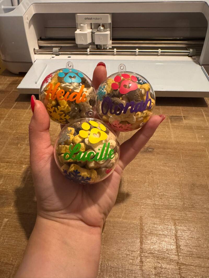 Velen van jullie kennen deze leuke gepersonaliseerde kerstballen al van de afgelopen jaren. Leuk om te krijgen maar nog leuker om te geven! Geheel gepersonaliseerd met naam in iedere gewenste kleurencombinatie. Gevuld met sneeuw of juist gevuld met lekkere hondenkoekjes! Voor welke ga jij? ;-)