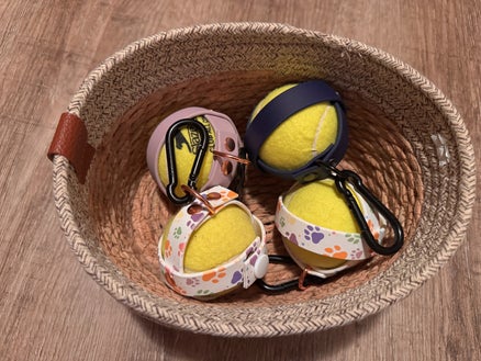 Je kent het wel, even lekker een rondje erop uit met de hond maar voor onderweg moet er een balletje mee om te gooien en te spelen. Dus hup een tennisbal mee in de zak. Geen probleem, tot het na het spelen weer klef onder de kwijl en modder weer terug in je zak moet... zo ontstond deze super handige gadget. In allerlei kleurtjes biothane verkrijgbaar.
